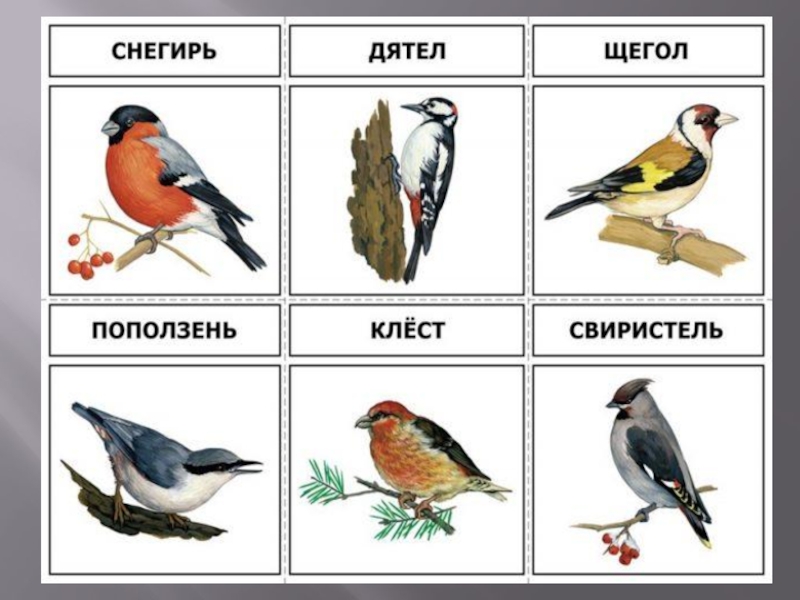 Подбор иллюстраций о зимующих птицах нашего края