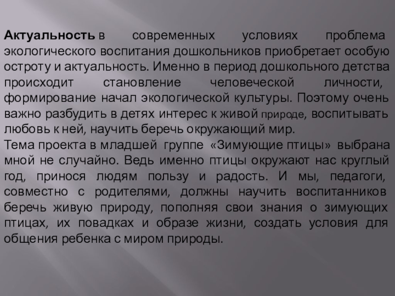 Слайд 2Актуальность в современных условиях проблема экологического воспитания дошкольников приобретает особую остроту и