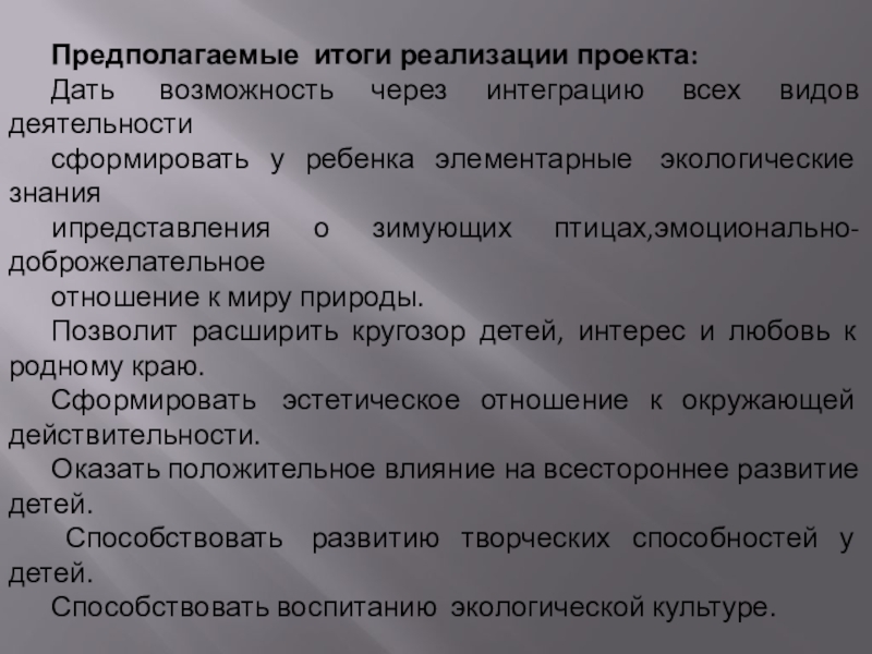 Слайд 12Предполагаемые итоги реализации проекта: