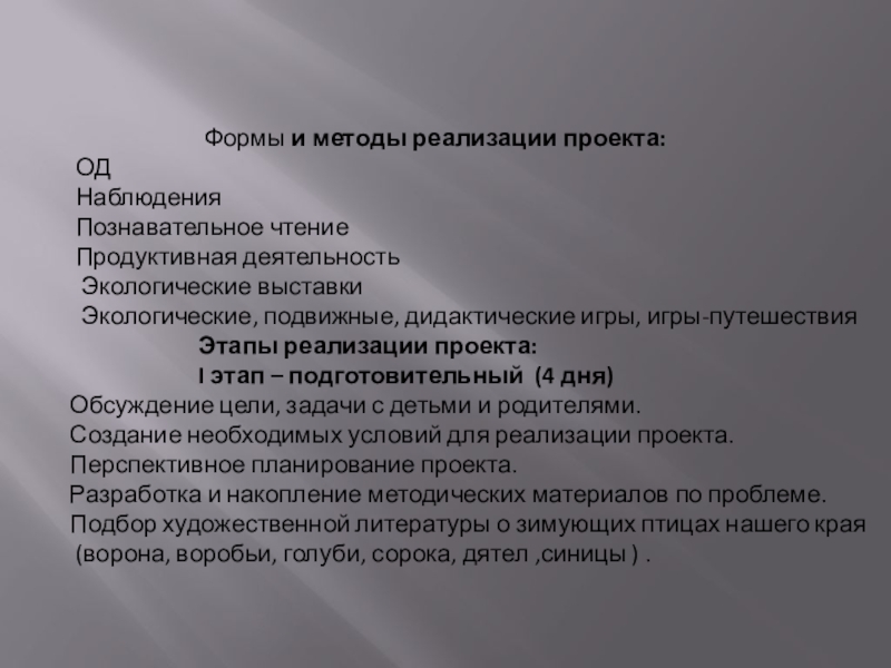 Формы и методы реализации проекта: