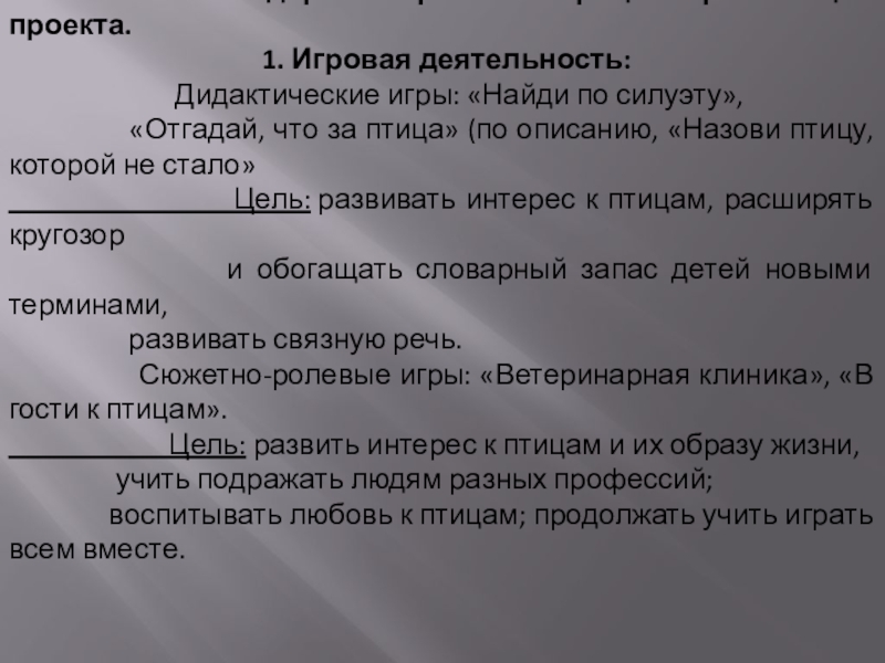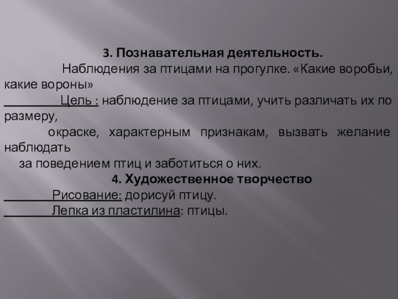 Цель: развить интерес к птицам и их образу жизни,