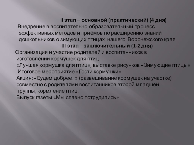 II этап – основной (практический) (4 дня)