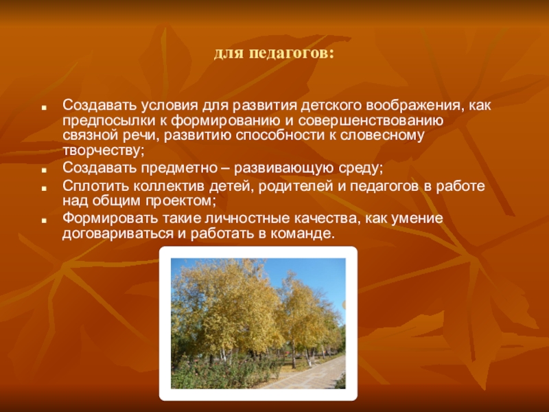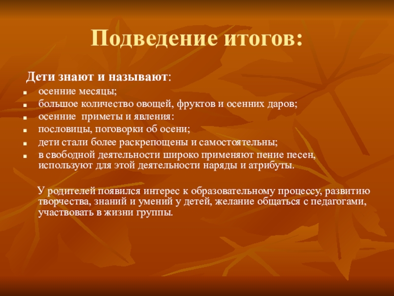 Развивать потребность в получении новых знаний об осени;