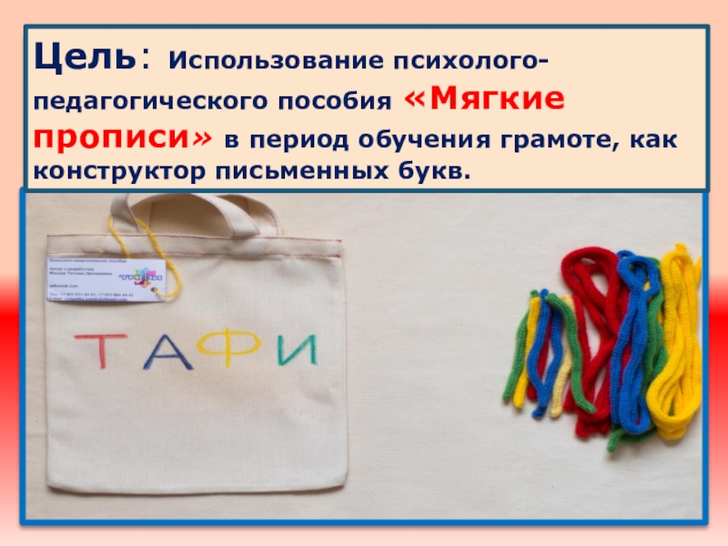 Цель: Использование психолого-педагогического пособия «Мягкие прописи» в период обучения грамоте, как конструктор письменных букв.