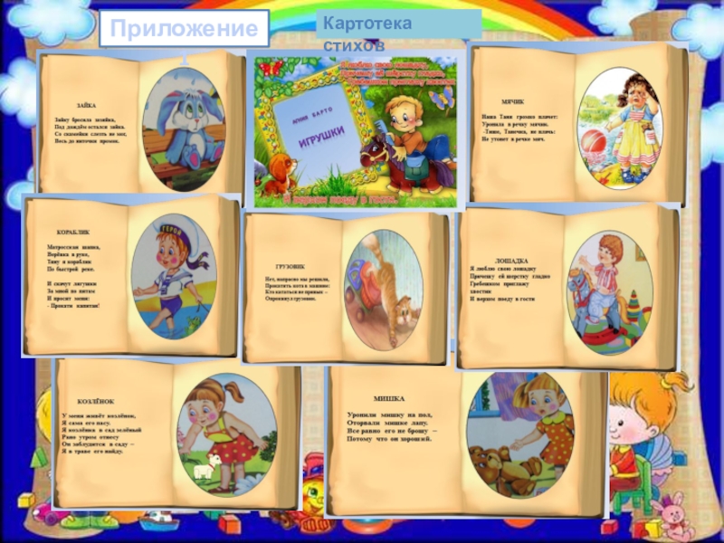 Картотека стихов А. Барто из цикла «Игрушки»;