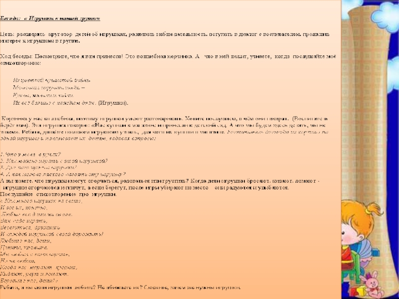 игрушка», «Игрушки в нашей группе», «Берегите игрушки».