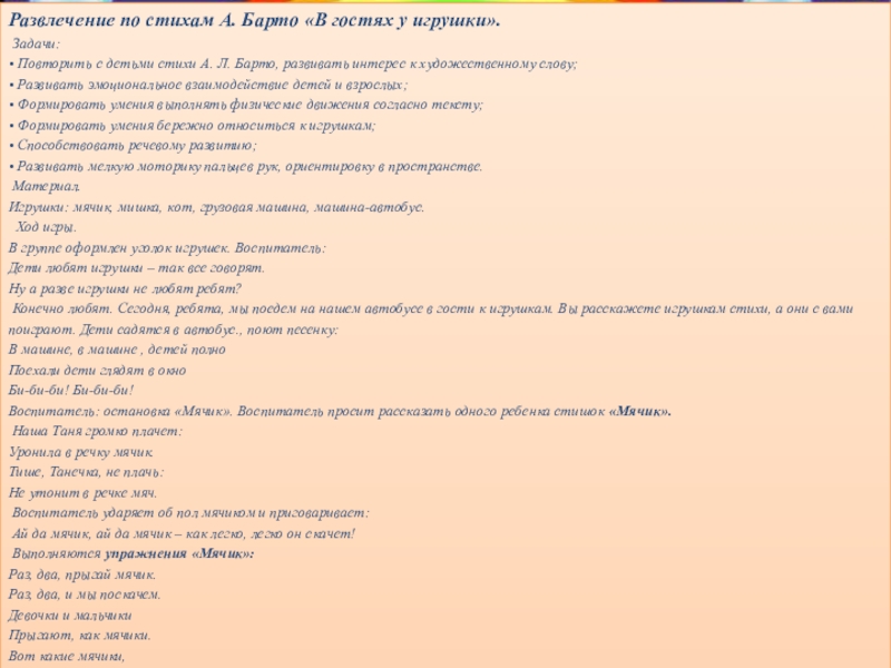 Развлечение по стихам А. Барто «В гостях у игрушки».