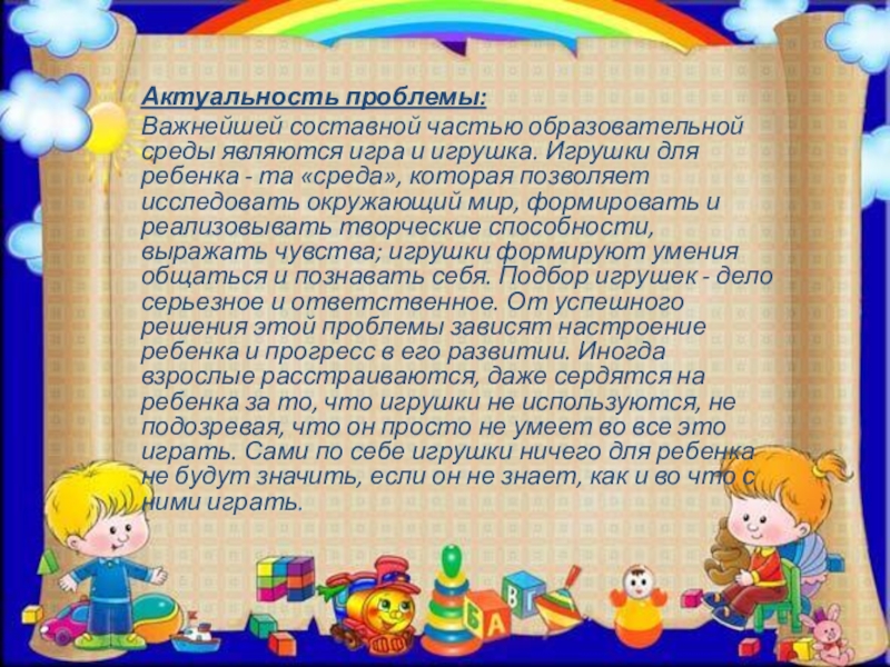 Важнейшей составной частью образовательной среды являются игра и игрушка.