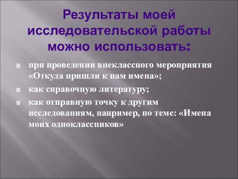 как отправную точку к другим исследованиям, например, по теме: «Имена моих одноклассников»