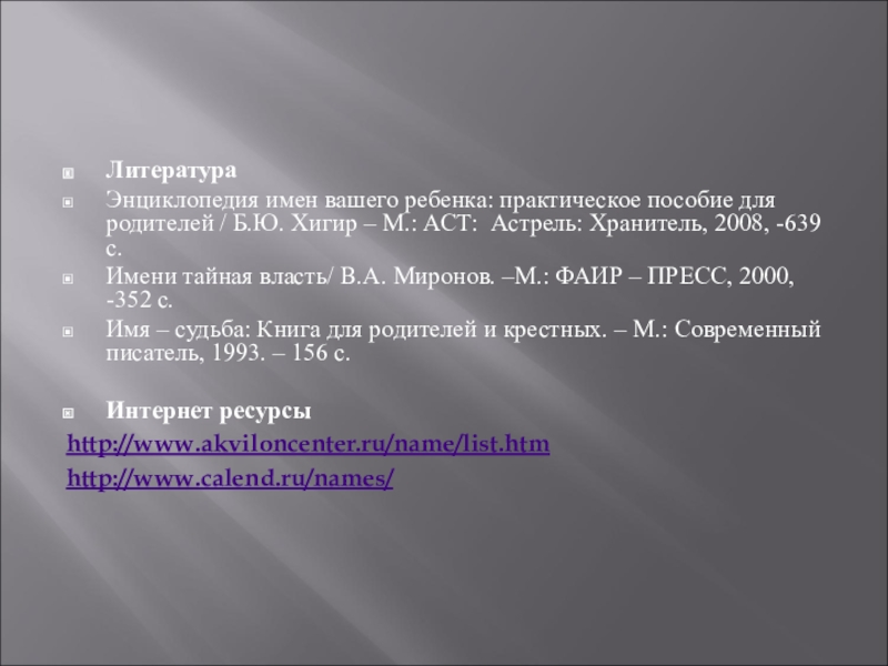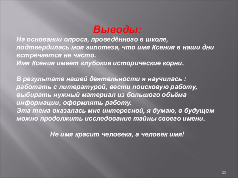 Эта тема оказалась мне интересной, я думаю, в будущем можно продолжить исследование тайны своего имени.