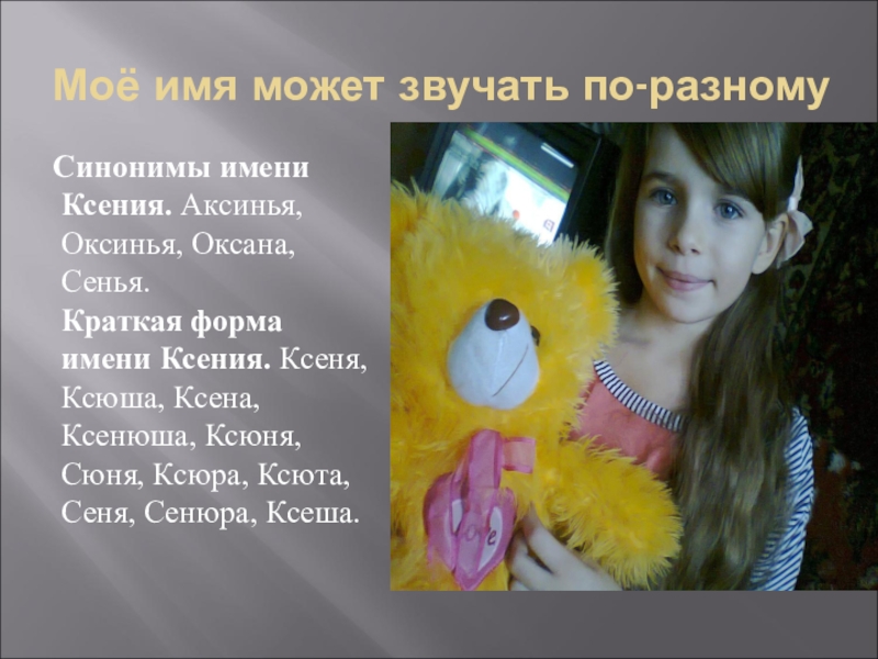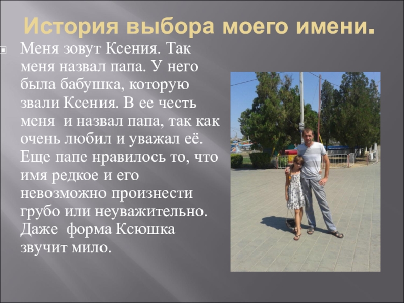 Меня зовут Ксения. Так меня назвал папа. У