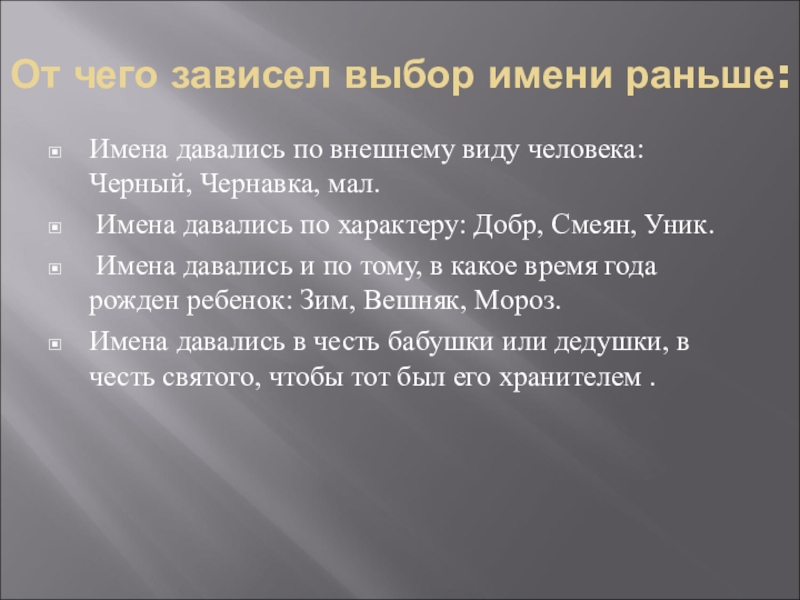 Слайд 8От чего зависел выбор имени раньше: