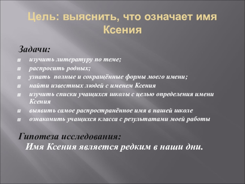 Слайд 4Цель: выяснить, что означает имя Ксения