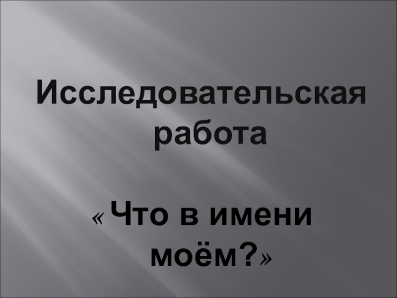 « Что в имени моём?»