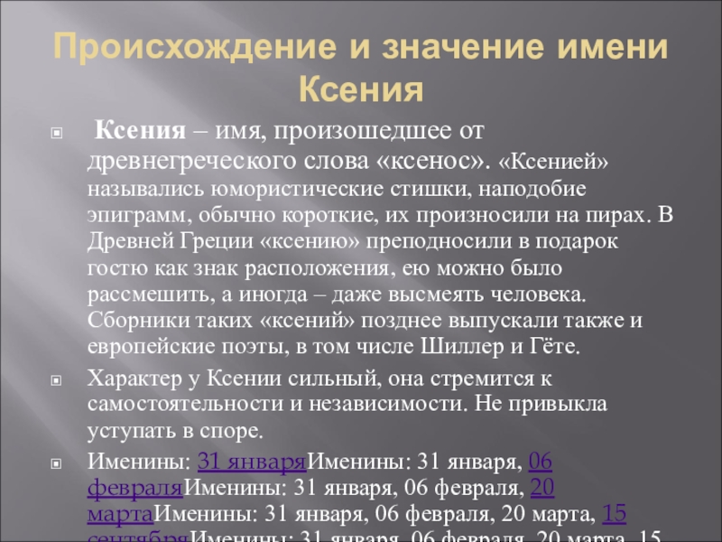 Слайд 13Ксения – интересные факты об имени