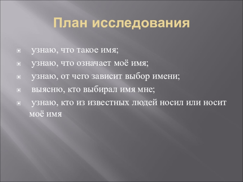 Слайд 7План исследования