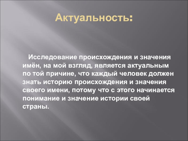 Исследование происхождения и значения имён, на мой взгляд, является актуальным по