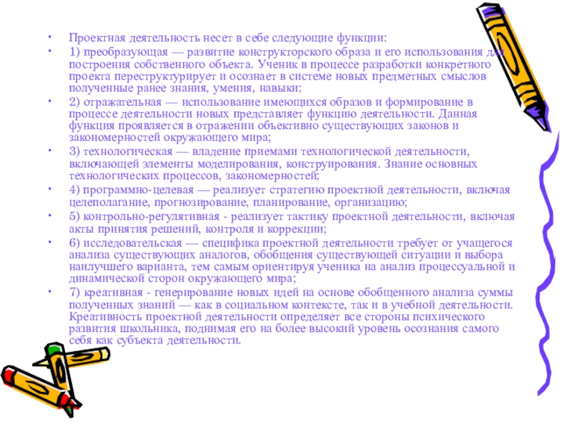 Слайд 7Проектная деятельность несет в себе следующие функции: