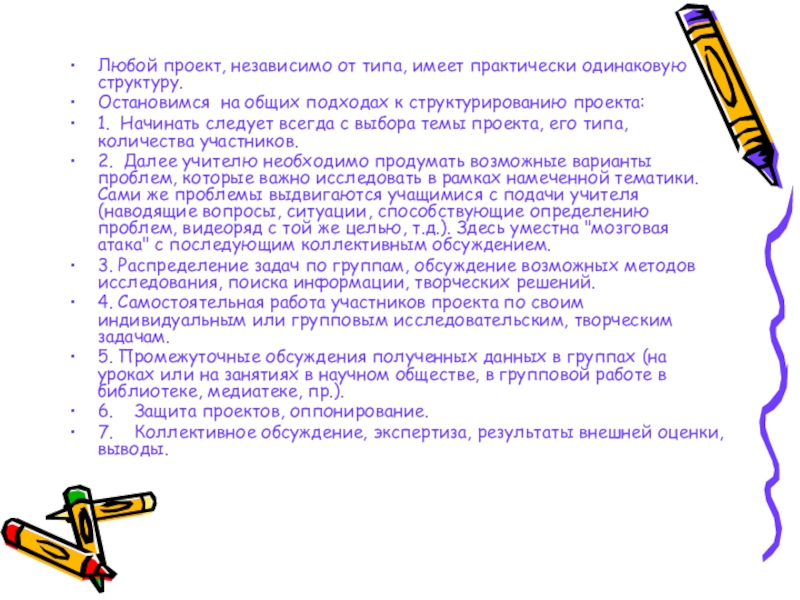 Слайд 10Любой проект, независимо от типа, имеет практически одинаковую структуру.