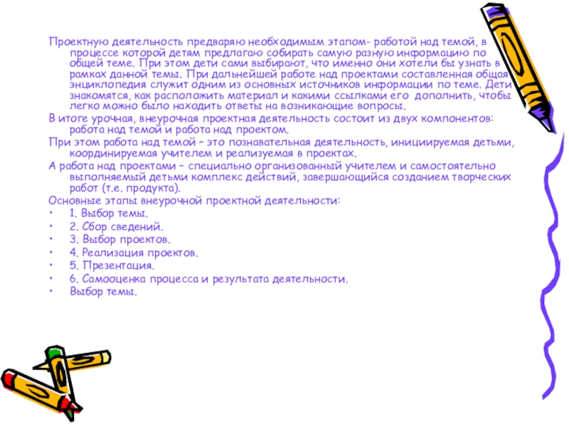 Слайд 12Проектную деятельность предваряю необходимым этапом- работой над темой, в процессе которой