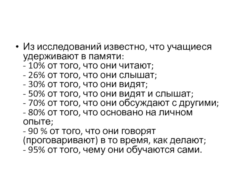 Из исследований известно, что учащиеся удерживают в памяти: