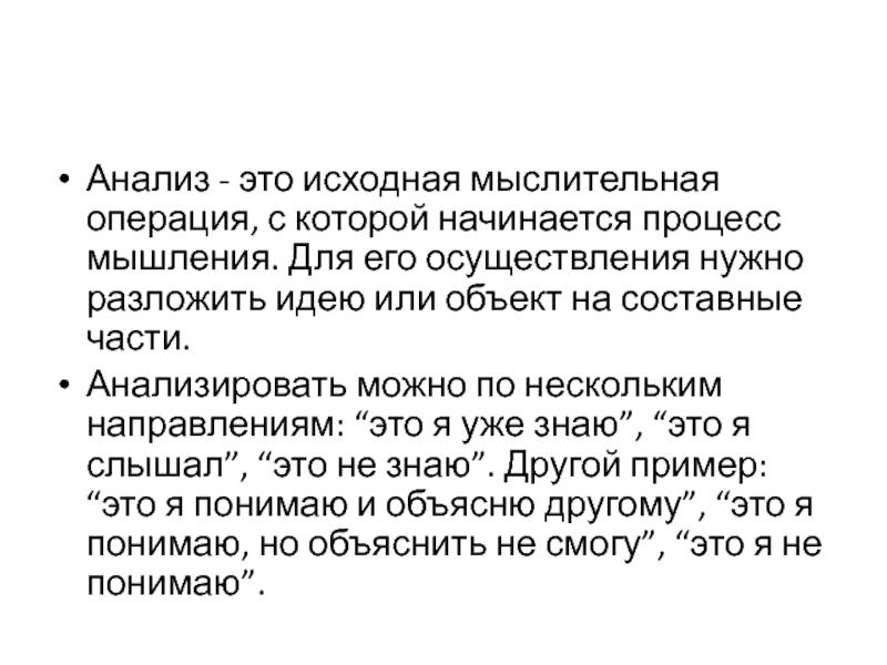 Анализ - это исходная мыслительная операция, с которой начинается процесс мышления.