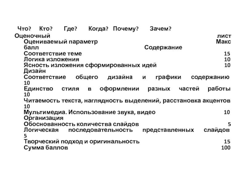Слайд 6 Что? Кто? Где? Когда? Почему? Зачем?