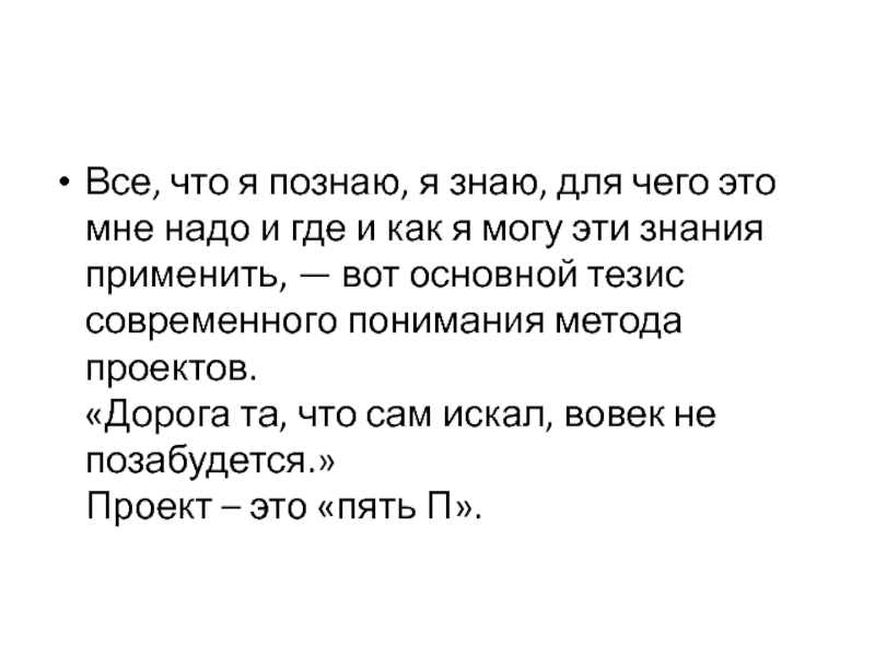 и где и как я могу эти знания применить, — вот основной тезис современного понимания метода проектов.