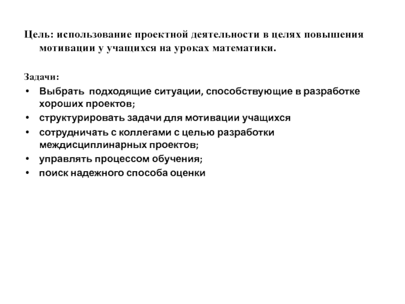 Слайд 3Цель: использование проектной деятельности в целях повышения мотивации у учащихся на