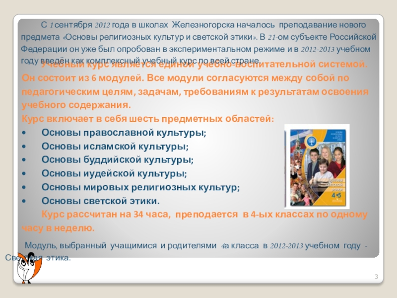 Модуль, выбранный учащимися и родителями 4а класса в 2012-2013 учебном году - Светская этика.