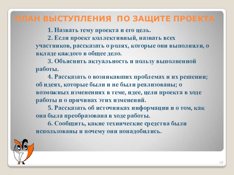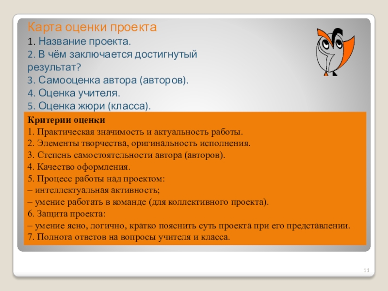 – умение ясно, логично, кратко пояснить суть проекта при его представлении.