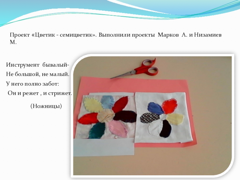 Проект «Цветик - семицветик». Выполнили проекты Марков А. и Низамиев М.
