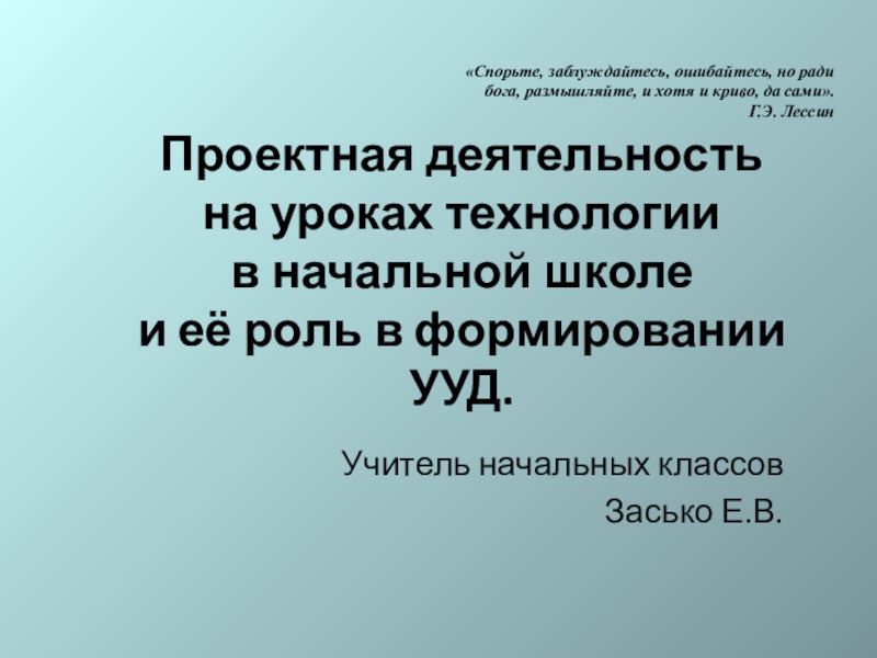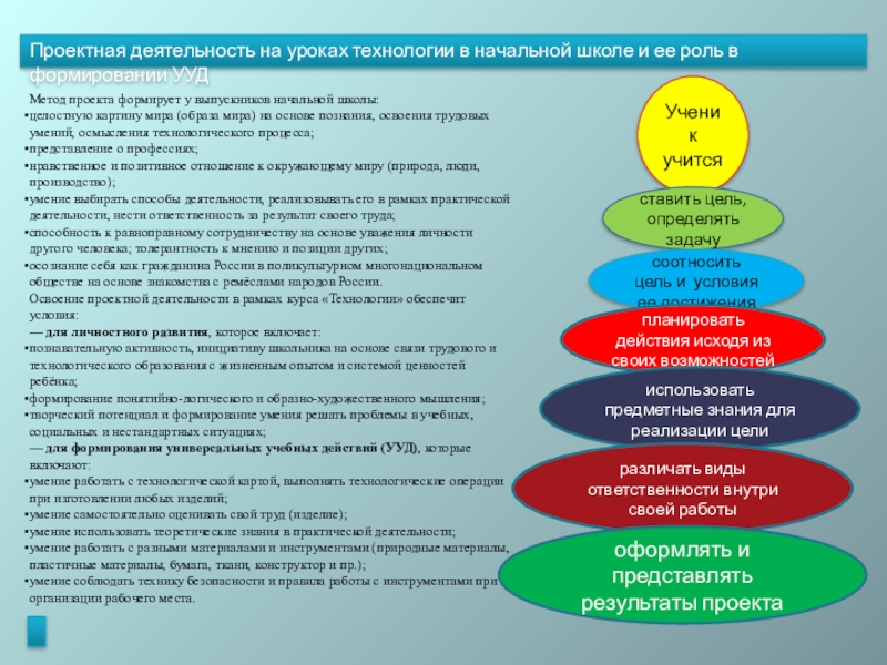Проектная деятельность на уроках технологии в начальной школе и ее роль в формировании УУД