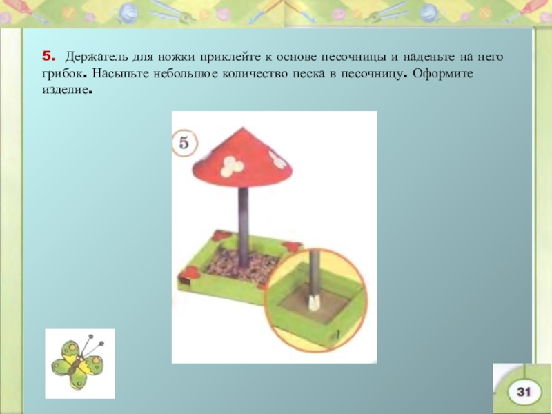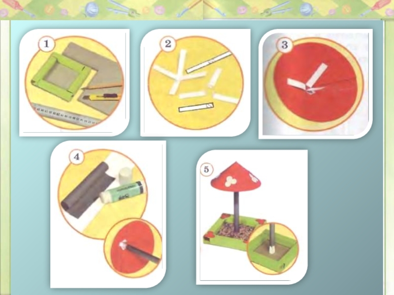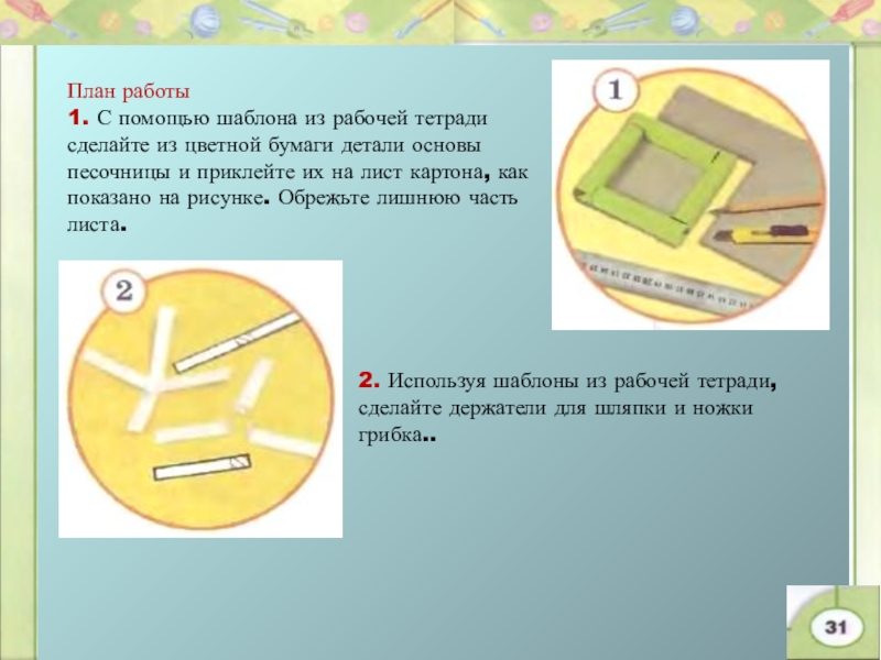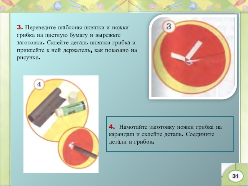 2. Используя шаблоны из рабочей тетради, сделайте держатели для шляпки и ножки грибка..