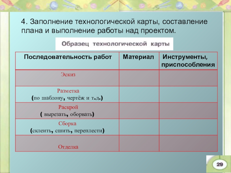 План работы над изделием