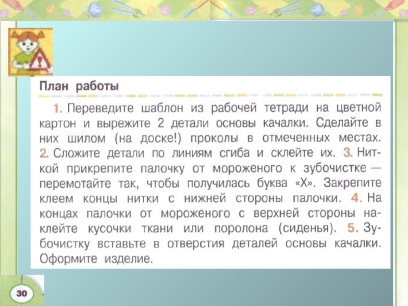 План изготовления изделия:
