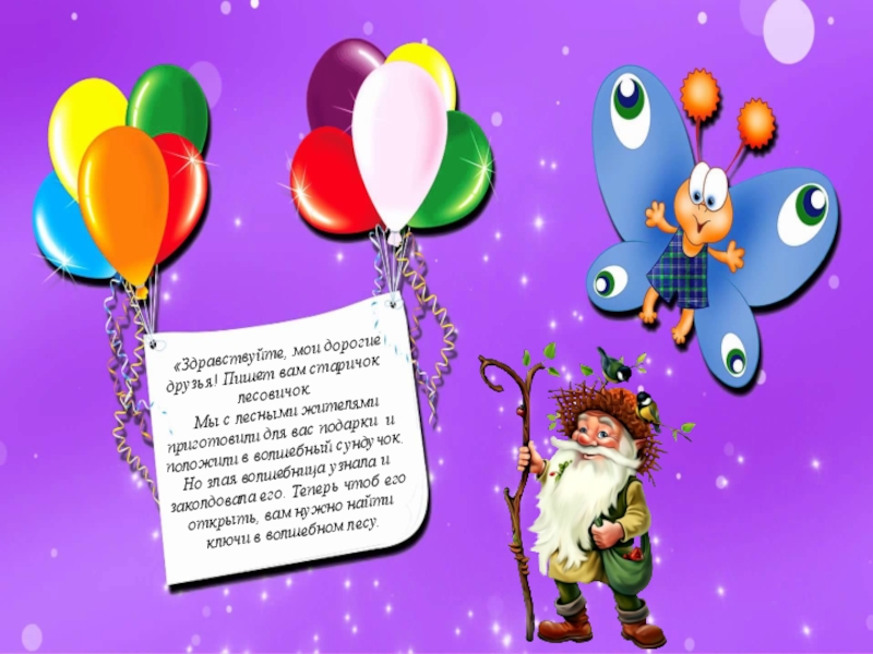 Слайд 14 «Здравствуйте, мои дорогие друзья! Пишет вам старичок лесовичок.