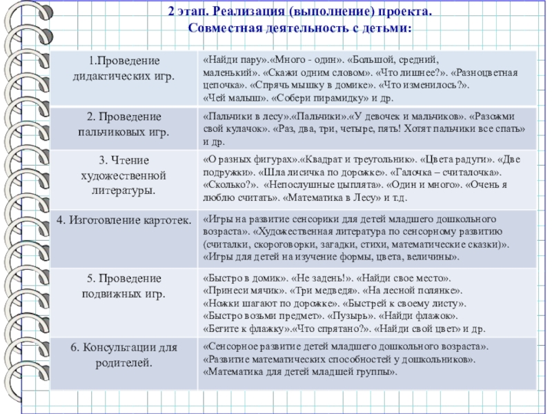 2 этап. Реализация (выполнение) проекта.
