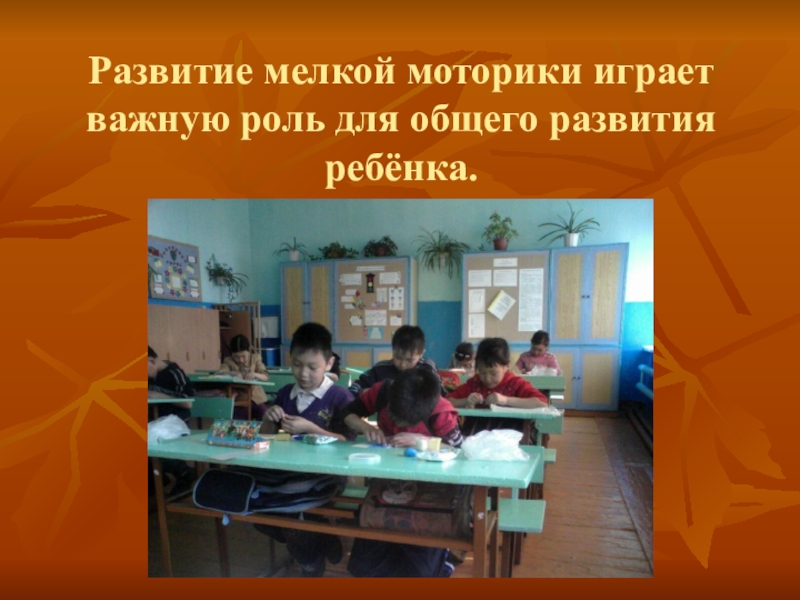 Слайд 16Развитие мелкой моторики играет важную роль для общего развития ребёнка.