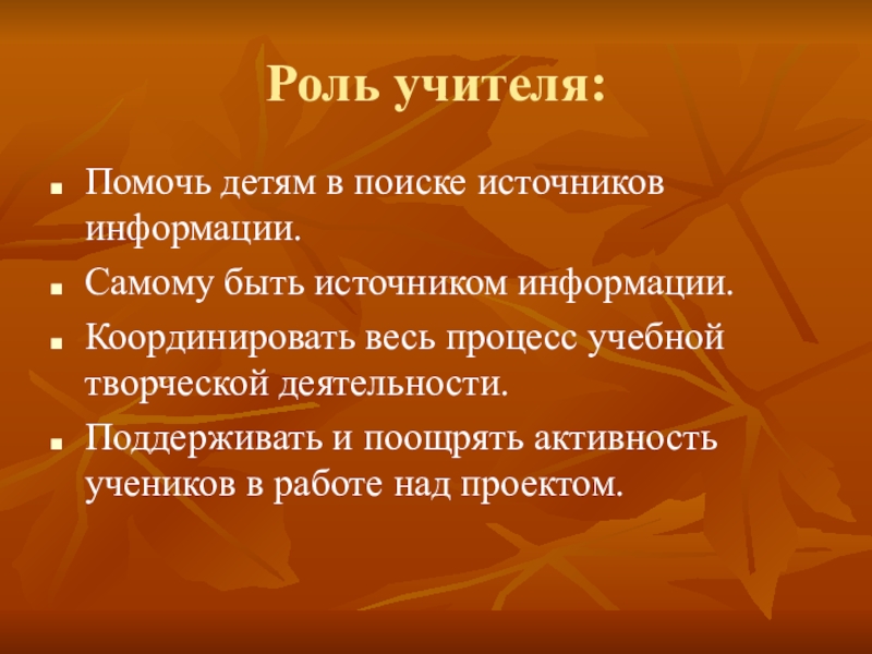 Слайд 4Роль учителя: