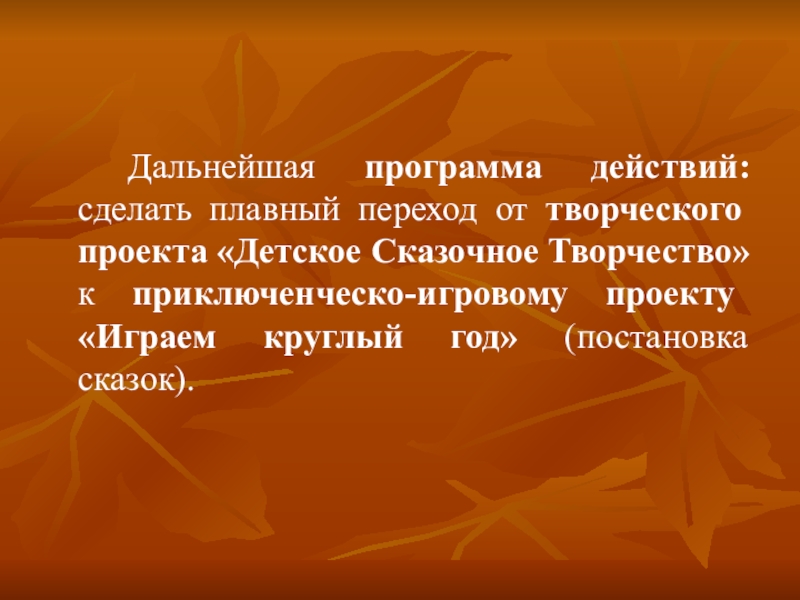 Дальнейшая программа действий: сделать плавный переход от творческого проекта «Детское