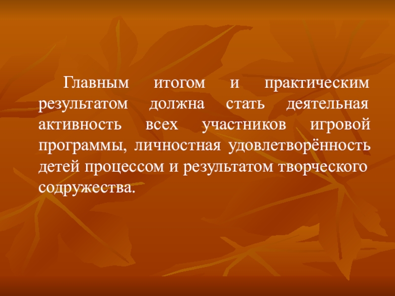 участников игровой программы, личностная удовлетворённость детей процессом и результатом творческого содружества.