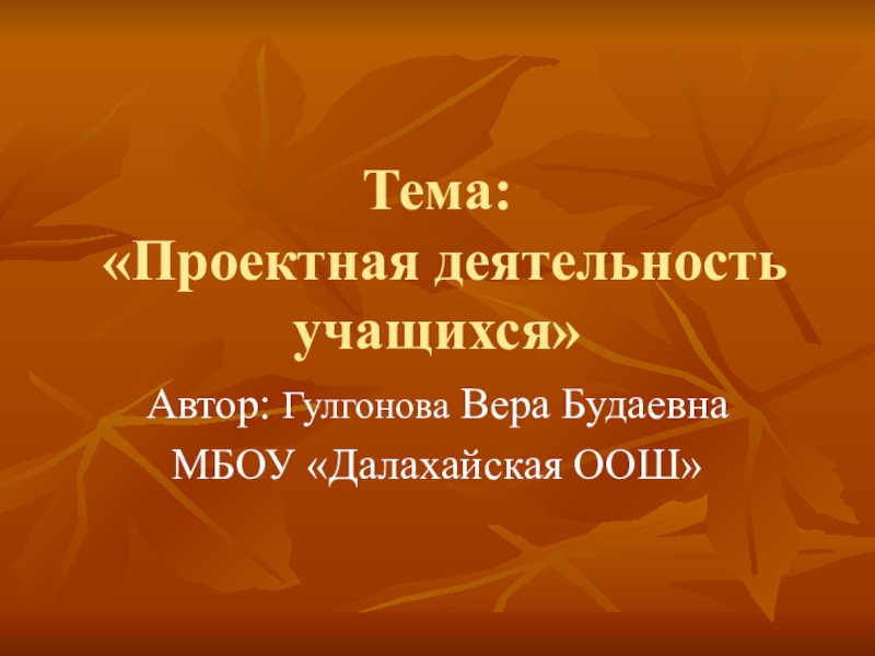 «Проектная деятельность учащихся»