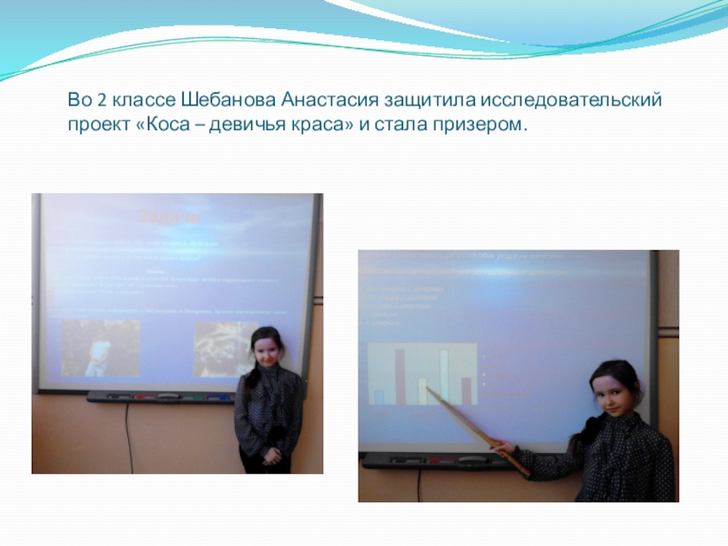 Во 2 классе Шебанова Анастасия защитила исследовательский проект «Коса – девичья краса» и стала призером.