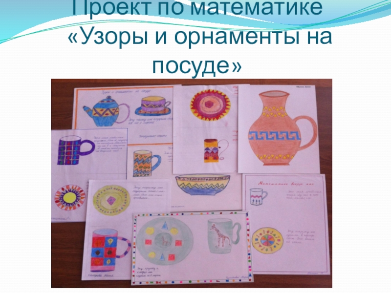 Слайд 15Проект по математике «Узоры и орнаменты на посуде»