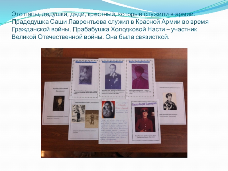 Слайд 9Это папы, дедушки, дяди, крестный, которые служили в армии. Прадедушка Саши