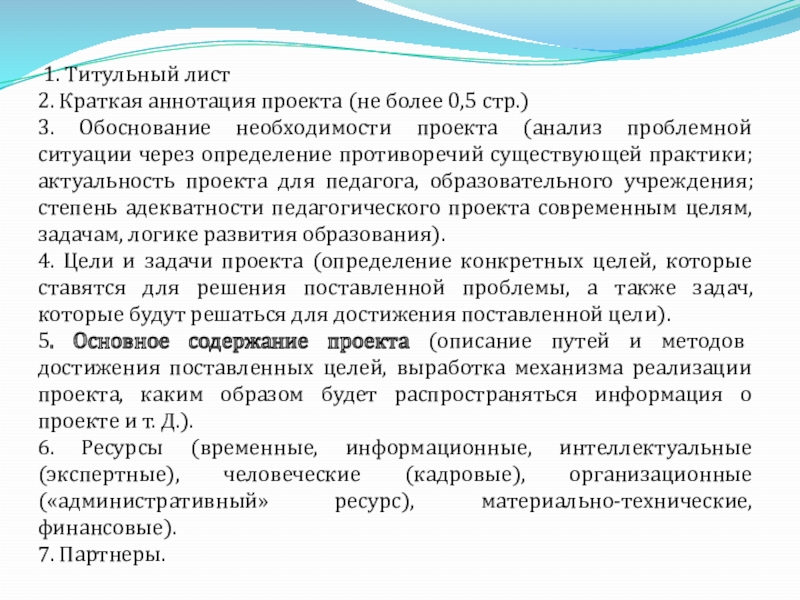 необходимости проекта (анализ проблемной ситуации через определение противоречий существующей практики; актуальность проекта для педагога, образовательного учреждения; степень адекватности педагогического проекта современным целям, задачам, логике развития образования).