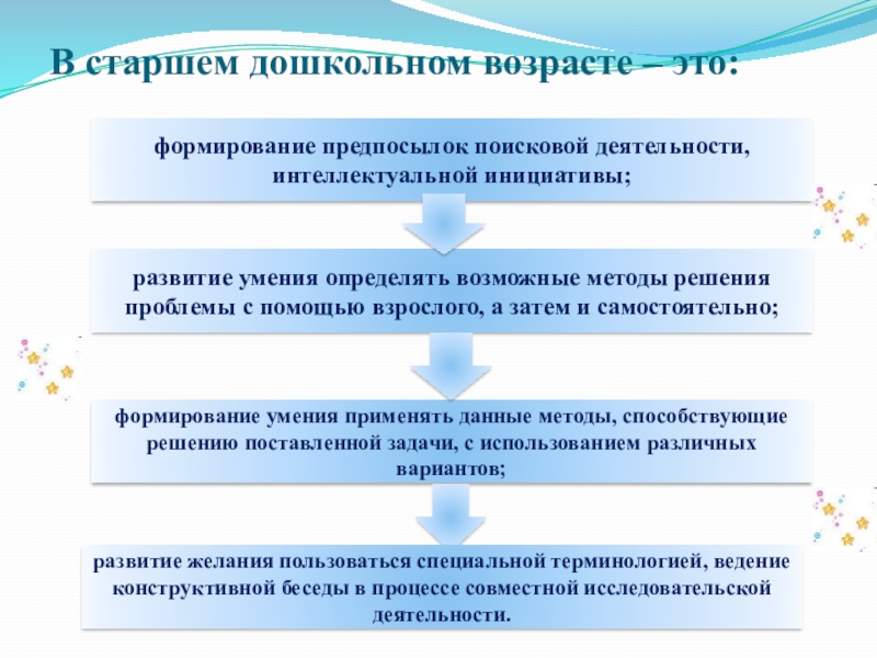 формирование предпосылок поисковой деятельности, интеллектуальной инициативы;