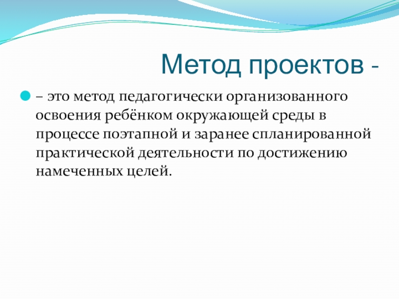 Суть “метода проектов” в образовании состоит в такой организации образовательного процесса, при которой обучающиеся приобретают знания и умения, опыт творческой деятельности, эмоционально-ценностного отношения к действительности в процессе планирования и выполнения постепенно усложняющихся практических заданий проектов, имеющих не только познавательную, но и прагматичную ценность