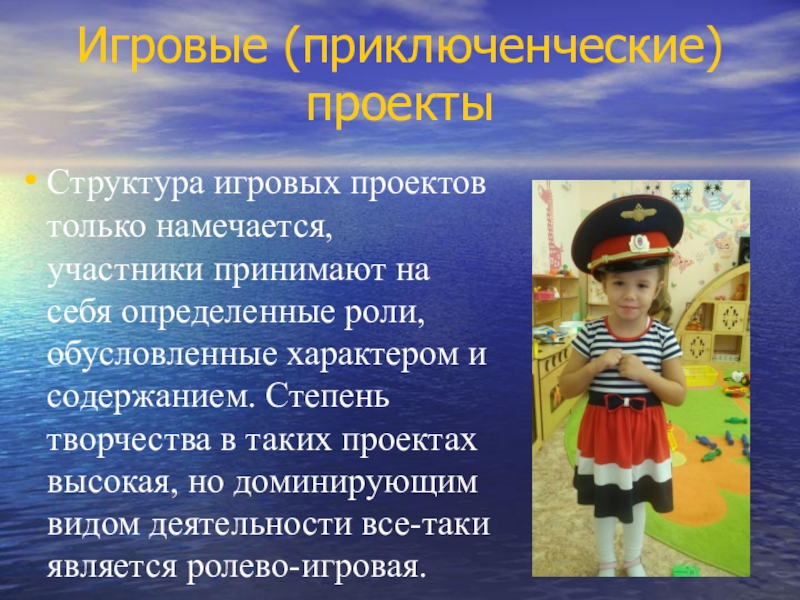 определенные роли, обусловленные характером и содержанием. Степень творчества в таких проектах высокая, но доминирующим видом деятельности все-таки является ролево-игровая.